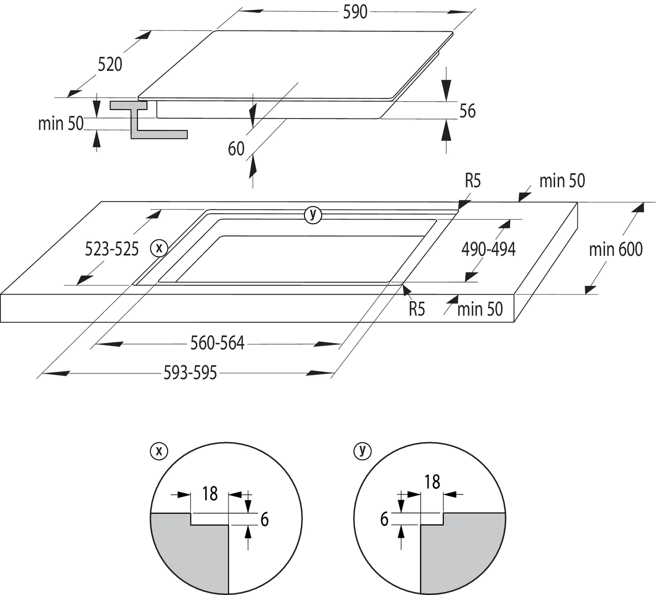 Ширина ниши для встраивания, мм