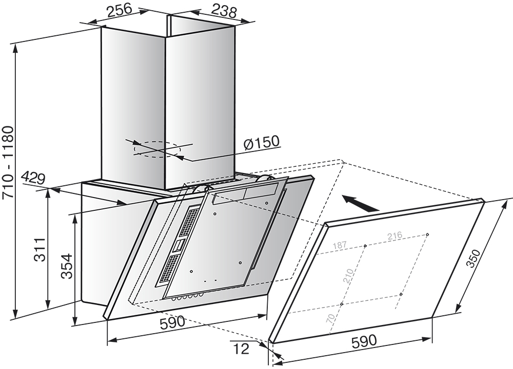 Вытяжки настольного монтажа и встраиваемые в столешницу