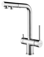 SERPENTINE оснащён функцией TRINKWASSER - излив смесителя имеет встроенный независимый канал для питьевой воды из фильтра, таким образом питьевая и водопроводная вода не смешиваются. Управление питьевой водой осуществляется отдельным рычагом, расположенным слева. Для пуска водопроводной воды используется большой рычаг справа.